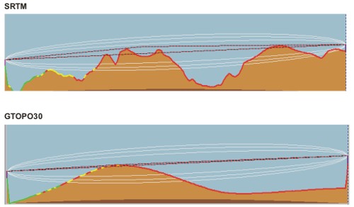 Estou iniciando no RadioMobile e fiz uma análise usando SRTM e depois GTOPO30 e percebi que o resultado da simulação é muito grande...