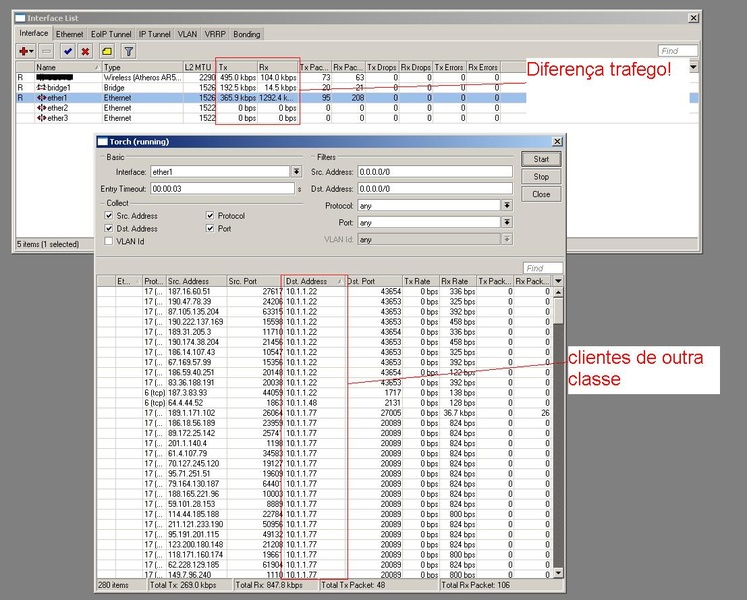 O que acontece é que dou um torch na routerboard que faz o gerenciamento da região (qualquer uma das duas) e aparece trafego do 10.1.1.x...