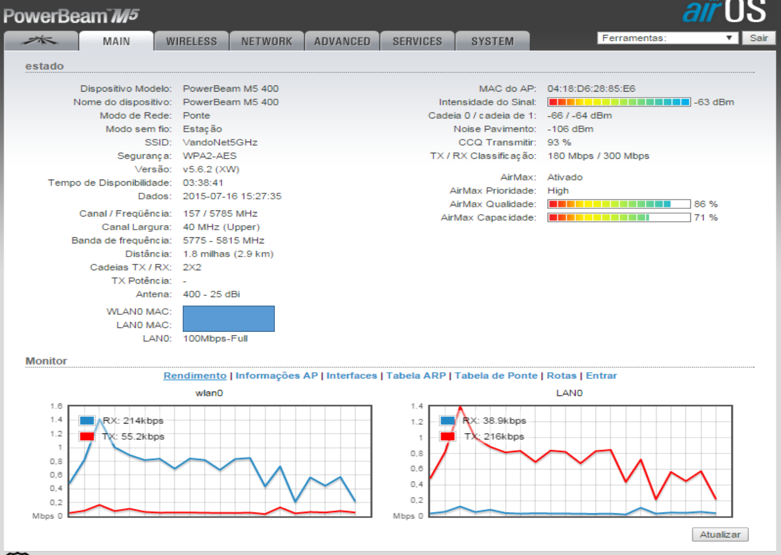 o nanobeam como ap esta na minha cidade em uma área muito baixa e o powerbeam esta em um sitio fora da cidade e bem mais alto do que o nano ap, culpa do terreno que é bem mais alto.