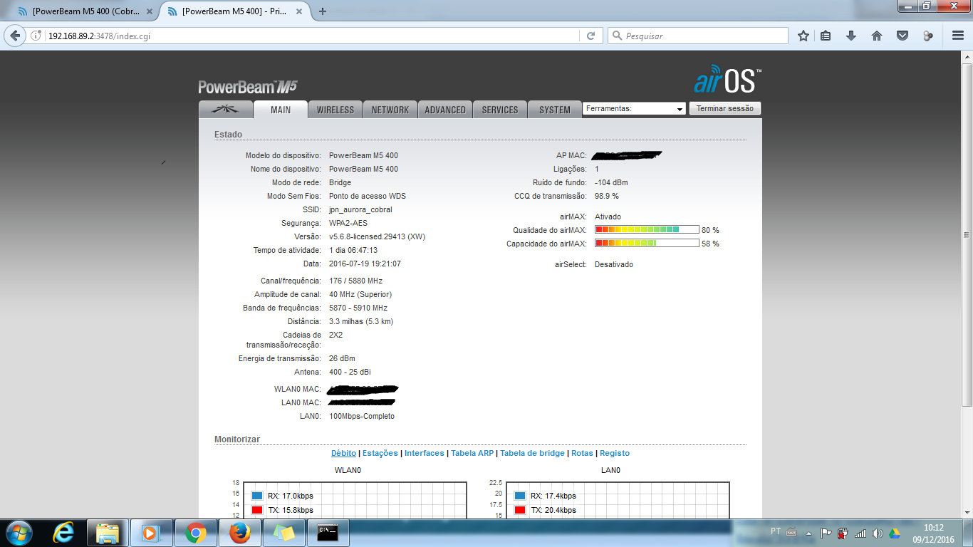 Boa tarde galera. Hoje eu fiz um ponto a ponto usando um powerbeam m5 400 e um nanobean m5 19. o nano esta configurado como AP e o powerbeam como cliente, todos em modo ponte.