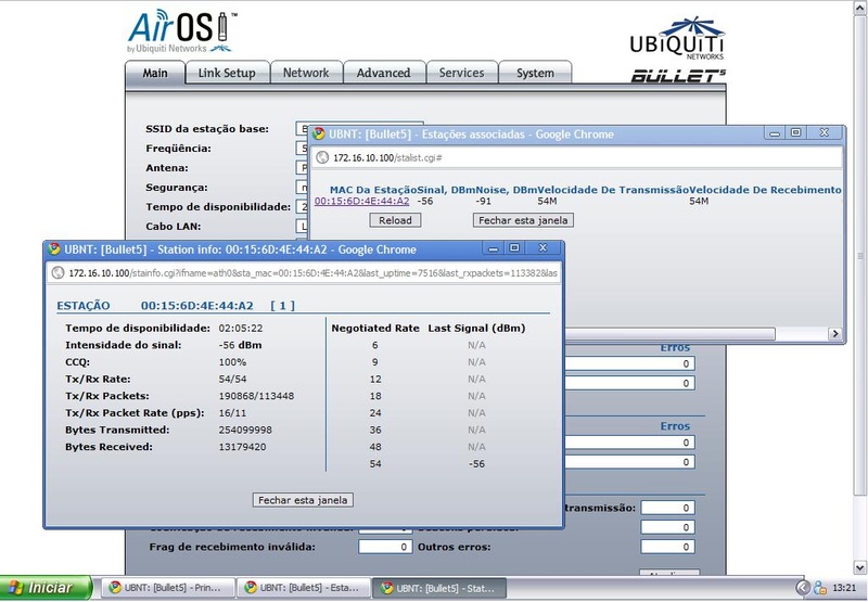 Posso dizer com TOTAL garantia que superou em muito o que eu esperava. Com uma NanoStation 5 em modo cliente, na distância de +- 700 metros obtive um nível de sinal de -56dbm. Bullet 5 setado em 15dbm (32mw), e NanoStation também.