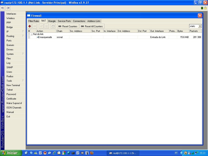 Como está o firewall, nat, mangle, controles e etc?