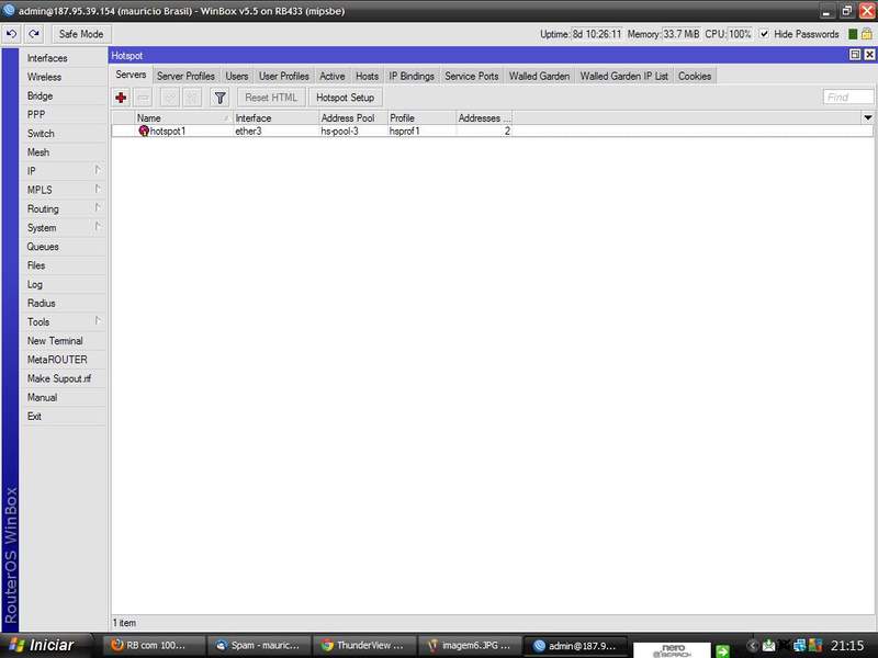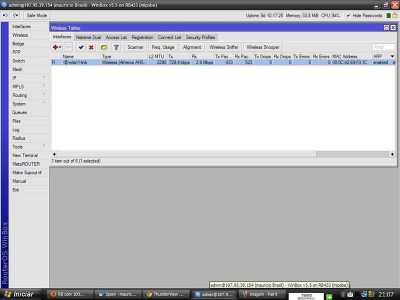 amigos estou preocupado tenho uma RB 433 com 1 cartão r52h para pegar o meu link em 5.8 mando internet para o meus clientes a cabo uma media de 120 clientes na rb fica marcando 100% de uso da cpu e memoria 40.6 mib o que tenho que fazer