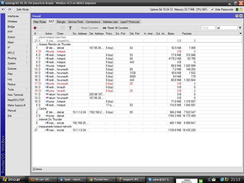 não tem firewall, esta bridge wds.... 1 cliente.... porem o numero de solicitações são altos.