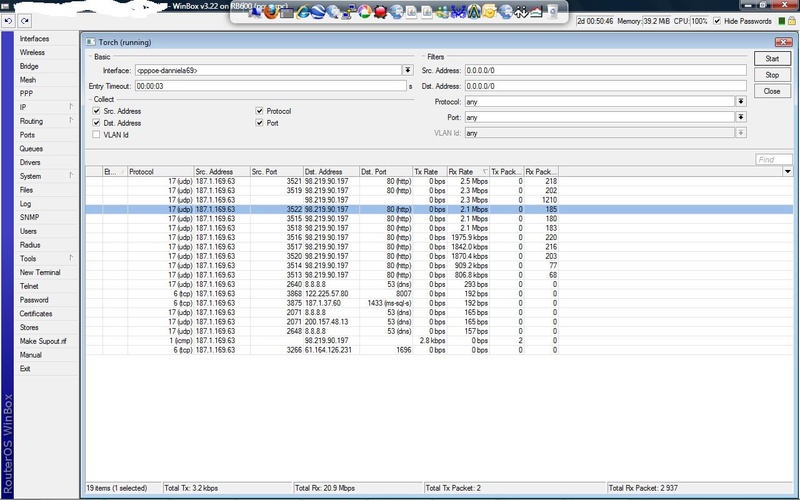 Outros clientes geram tráfego até o backbone, fazendo com que o mesmo seja totalmente consumido . Já fui em alguns cilentes tentar verificar na máquina do mesmo e ver se não era algum tipo de P2P novo, ou gerenciador de download que está conseguindo furar o shape do MK, em alguns clientes vi que no seu desktop, possuia uma grande quantidade de vírus em outros não vi vírus algum e nada que despertasse atencão . No controle de banda eu trabalho com Burst, mas o mesmo está configurado para 10 segundos, os clientes que conseguem furar o controle se deixar passam horas e horas usando todo o link do throughput até eles .