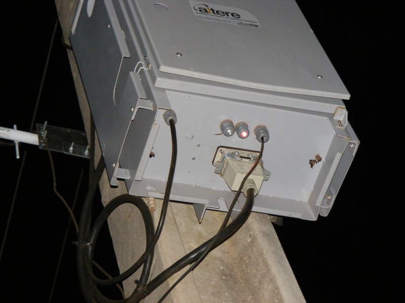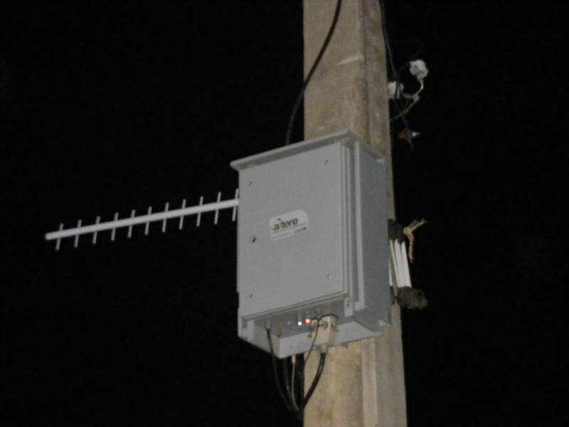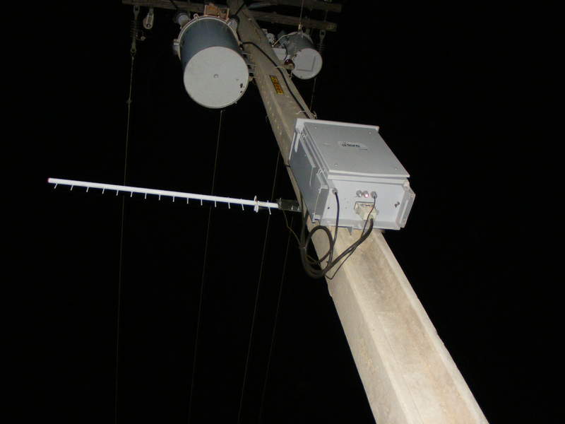 Estava eu passando por umas fazendas proximas a uma de nossas torres rurais, e encontrei este equipamento preso a um poste de energia da cemig, percebi que a antena é de celular, mas queu equipamento é este?