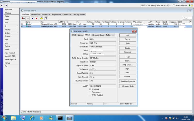 Os rádios associam e desassociam em questão de segundos. Tive que desabitivar para meus clientes não ficarem sem acesso, mas dai continuo com o problema de pouca banda.
