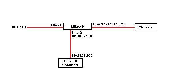 Hoje tenho uma RB 450G que me gerencia este link o qual tem entrada na porta Ether 1 conforme podem observar no desenho, e gostaria de ligar na Ether 2 o servidor Proxy Thunder, na porta Ether3 desejo deixá-la para saída de links dedicados que vendo para empresas e na porta Ether4 que deixá-la para ligar o meu servidor MyAuth3 que gerencia por Hostpost a conexão de meus clientes.