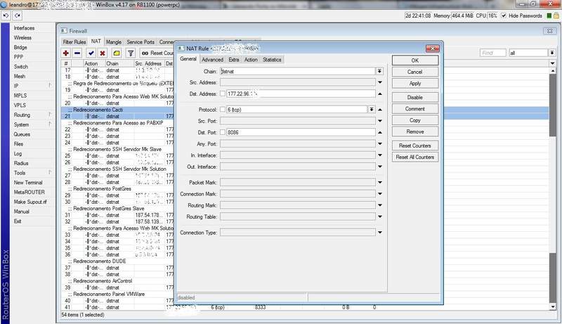 Bom dia galera , tenho 1 aprouter configurado com ip 192.168.2.100 ultilizado a porta 81, como posso liberar essa porta no mikrotik para que eu possa acessa-lo fora da rede exemplo: http:\\dominio.dyndns.pro:81 , agradeço a todos pela ajuda