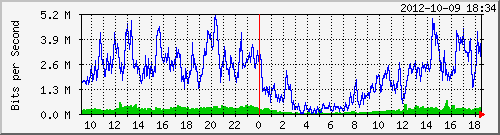 No relatório do MRTG, aparece picos de consumo de banda de 20 megas, que é o que eu tenho de link aqui.
