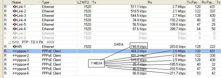 Ola amigo bom dia , seguinte tenho um PCC com 6 adsl de 8 megas, ate então estava tudo ótimo, des uns dias vem acontecendo o seguinte , eles vão ate 2,6 megas em cada linha e não sai 800kbps no final, isso acontece com apenas 3 linhas ai quando desativo as 3 ele volta a funciona normal a operadora disse que isso e modem então troquei e nada disse que tinha aguá nos cabos de rede então troquei , disse que podia ser alimentação inadequada então troquei preciso de ajudar vai um print pra melhor intendimento dos amigos