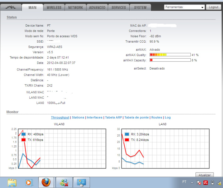 8- as duas ominitik estao em apbride, estou com alguns problemas as vezes conecto um nano m5 e não da rede, o ponto a ponto passou 6 megas beleza...