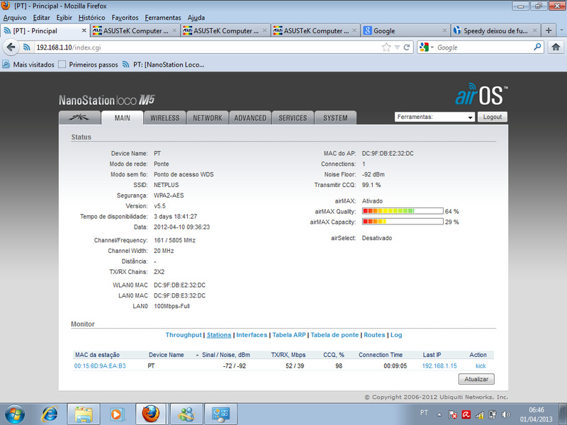 2- Dessa RB 751g sai um cabo que se liga a uma RB 433AH + mini pci XR2, que tambem tem mais uns 10 clientes conectados.