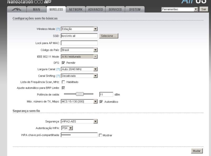 ola feras do under estou com um problema com uma nano que conecta dois clientes fica caindo a conexão acho que pode ser a configuração uso um bullet m5 e nano loco m5 13dbi tem algumas fotos para identificar Clique na imagem para uma versão maior