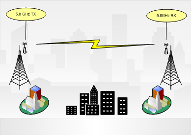 Um enlace via rádio, baseia-se na instalação de uma conexão wireless (sem fio) a partir de rádios e antenas instalados em torres, prédios, etc.