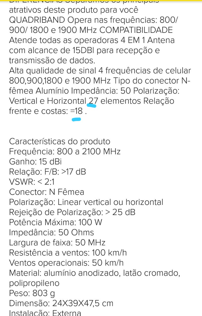 Eu ia pegar a de 17dbi mais não achei uma quadriband (pega a Claro em 900mhz e vivo em 850mhz)