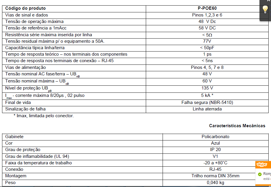 Bom dia pessoal, estou com um projeto de um radio licenciado, e a alimentação de energia do radio é via POE cabo UTP, mesmo usando cabo blindado furukawa e aterramento bom estou com medo de descargas elétricas, ai pensei no seguinte, como vou utilizar o cabo UTP somente para energia poderia colocar um protetor de surto de RJ45, e usar a porta de Fibra do radio para dados, alguém ja utilizou algo dessa maneira ou teria como me indicar um protetor de surto -48v e 35w? pois esse é o consumo do meu radio.