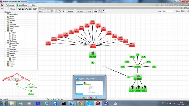 post ai o esquema de como esta ligado, o dude monitora os ip po ping, temq ver com esta sua rede, onde esta o dude instalado tudo, faz um desenho e manda ai para nos ver