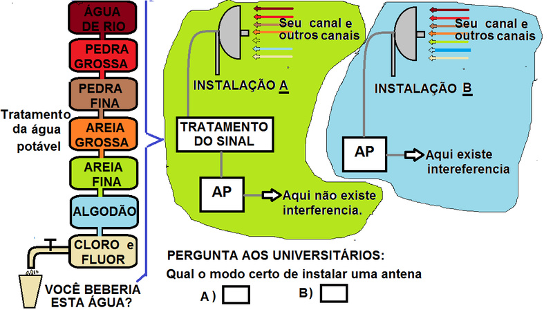 Vi no Youtube a filmagem de um ensaio de antena com uma explicação desastrosa. A filmagem acontecia num corredor onde uma antena recebia o sinal de outra.