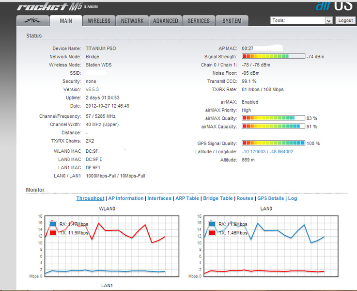 Nossos dois maiores enlaces medem 43km e o outro 75km, ambos com rocket m5.