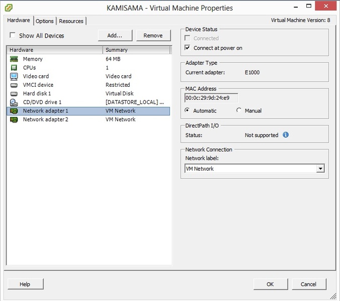 3 - A configuração da máquina virtual esta assim (as duas interfaces de rede tem a mesma configuração de hardware);