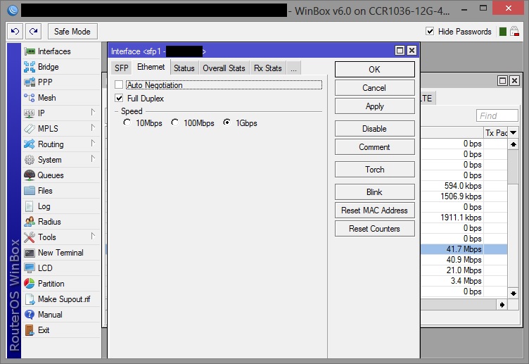 Estou tentando testar em bancada o funcionamento das portas SFP entre duas RBs 2011 1UAS-IN e não funcionam. Lembrando que estou utilizando GBIC da própria Mikrotik e PatchCord Furukawa nos testes. Simplesmente não aparece nada nas interfaces SFP das RBs. Outro detalhe é que utilizo a versão 6.0 final do RouterOS. Sabem o que pode ser?