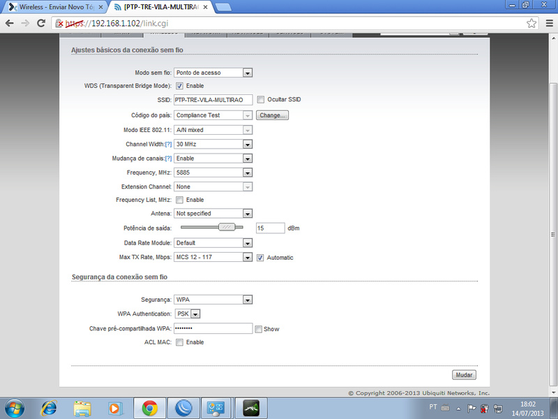 Olar galera estou com um probleminha em um ptp, é o seguinte uso 1 par de nanobridge m5 para fazer um elance de curta distância de no máximo 3 km até ai está tudo bem signal de -63 passando a banda que estava querendo de 30 mb, só que éla está se desconectando uma da outra, e depois conecta de novo, ex: fica mais ou menos 1 hora conectada e depois se desconecta após 1 minuto conecta de novo, o que pode ser ? segue 2 imagens uma de cada lado do ptp![]()