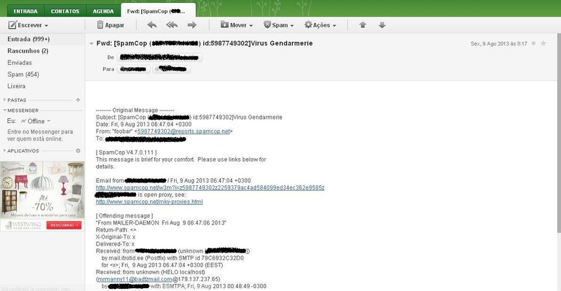 Recebendo E-mail de SpamCop (IP Quente da Minha RB) id:5987749302]Virus Gendarmerie e outros