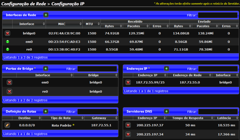 1. O IP do servidor tem que estar na interface da bridge.
