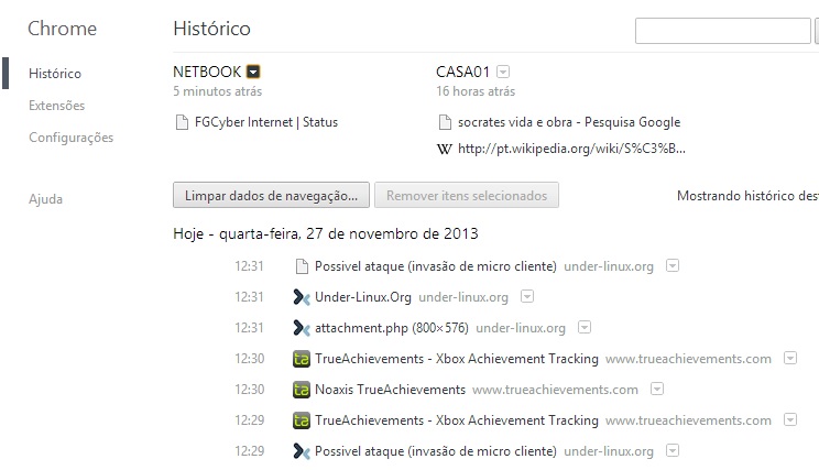 Estou com uma pulga atras da orelha aqui na rede. Tenho alguns condominios que eu atendo e trabalho com dois tipos de autenticação pppoe e hotspot. A cliente em questão esta em PPPOE com Roteador na sua casa, ela me mandou um PRINT o que coloquei abaixo, com duas possiveis pessoas que estão usando sua rede. Confesso que não entendi, como isso apareceria em seu historico do googlecrone? Será que invadiram o computador dela? Ou seria alguma invasão dos meus proprios clientes? Procurei esses nomes de pc no meu mikrotik e não encontrei não sei como funciona o historico do googlecrone e nem sei se apareceria naquele local? Sei que a cliente levantou a questão se a rede era segura afirmei que sim que podia ter cido alguem que ela passou a senha do wi-fi claro que ela disse que não mas conhecemos nossos clientes.