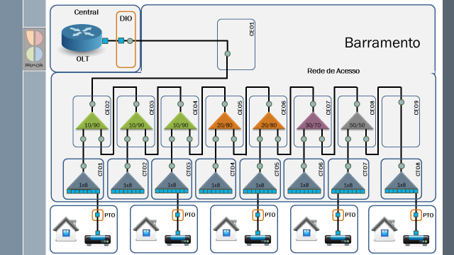 Meu cenário é uma rua linear com entroncamentos onde tenho de splittar para entrar nessas ruas, justamente o que achei em usar 5/95% onde a razão de 5% entra na rua do entroncamento e o de 95% de sequencia na rede, tá certo assim mesmo? Ai entra também uma outra pergunta: essa razão de 5% que entrou na rua poderei ir até que ponto com ela? Quantas cx de atendimento a cliente poderei distribuir?