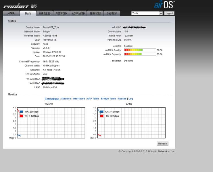 O que acho pior ainda daquele screenshot com 158 cliente é que o CCQ do AP tá em 95% e o AMQ e AMC tá praticamente na metade, bem ruim! A capacidade do rádio tá bem prejudicada, muitas retransmissões acontecendo, deve tá muito ruim a qualidade geral do serviço, não deve passar mais do que uns 10 megabits com varios clientes puxando..
