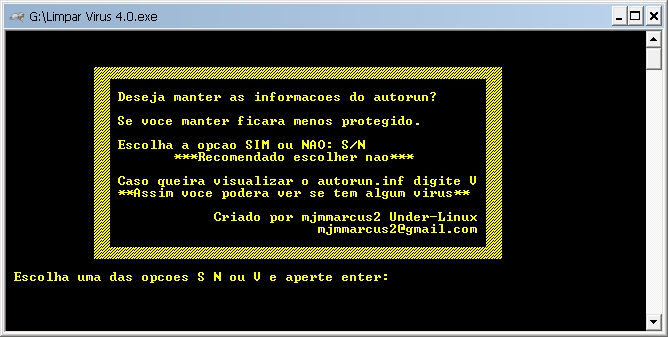 • Para terminar ele faz uma pergunta se você quer proteger o autorun ou não <-- Justamente o que o vírus usa para se trasportar de um computador para outro.