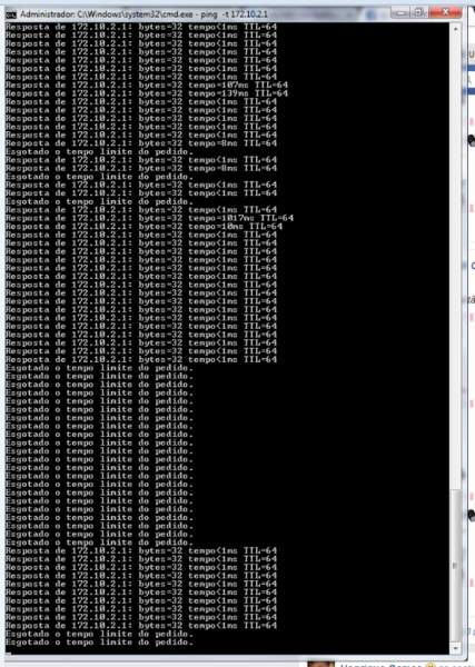 Estou enfrentando uma perca de ping que cumula na indisponibilidade da internet. já algum tempo, mas comecei a analisar o ping direto pro gateway e verifiquei que o mesmo fica dando perda, e que em 98% do tempo acontece mais a noite. conforme foto anexada, ja vi este problema uma vez muito tempo atras, quando alguem leigamente fez um looping em um switch de um amigo ficando mais ou menos deste jeito, mas o switch ficava piscando muito rapido, e no meu não pisca rapido, já removi os fios um por um e continuou com a perda. então não creio que seja looping. alguem poderia me ajudar