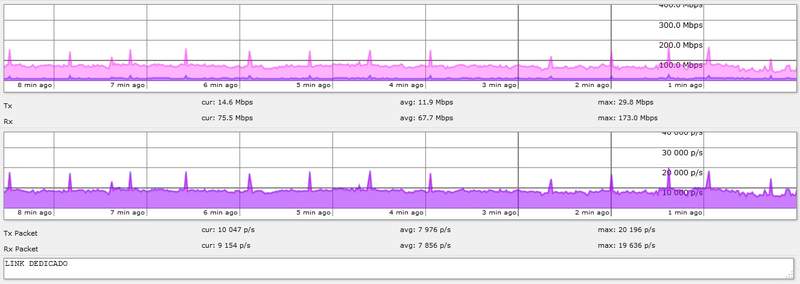 precisei trocar meu servidor mikrotik por outro com portas 100/1000, não subi backup, fiz tudo na mão desde o inicio e dei alguns export em algumas coisas, só que após esta troca fica aparecendo no gráfico uns picos de consumo ... achei que após isso minha rede passou a não consumir todo o link (banda sobrando apesar de mais clientes online), gostaria de uma forma de solucionar isto e agradeço quem puder ajudar ... Obs: ja aconteceu a anos atrás e eu resolvi não me lembro como. Abaixo um print do winbox e webfig