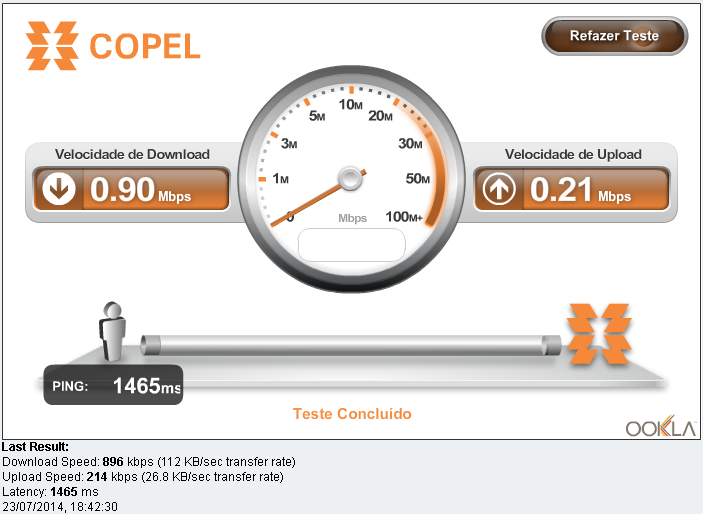 Como não entendo nada de configuração desse tipo de aparelho, vim pedir ajuda aqui. Em testes de velocidade, os 1 mb contratados chegam normal, porem o ping que antes ficava entre 100-200 agora tende a ficar sempre acima de 1k(Em qualquer medidor: Speed Test, Speed Test Copel, Minha Conexão etc) como podem ver na imagem.