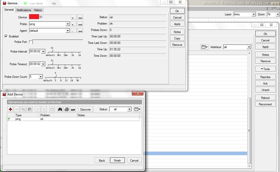Você não tem nenhuma máquina velha só para rodar o The Dude? Eu cheguei a instala-lo no mikrotik mas não gostei, consome um pouco da RB. Instalei em uma máquina só para monitorar, favor disparo e e-mail com stunnel e blat e acabou os problemas.