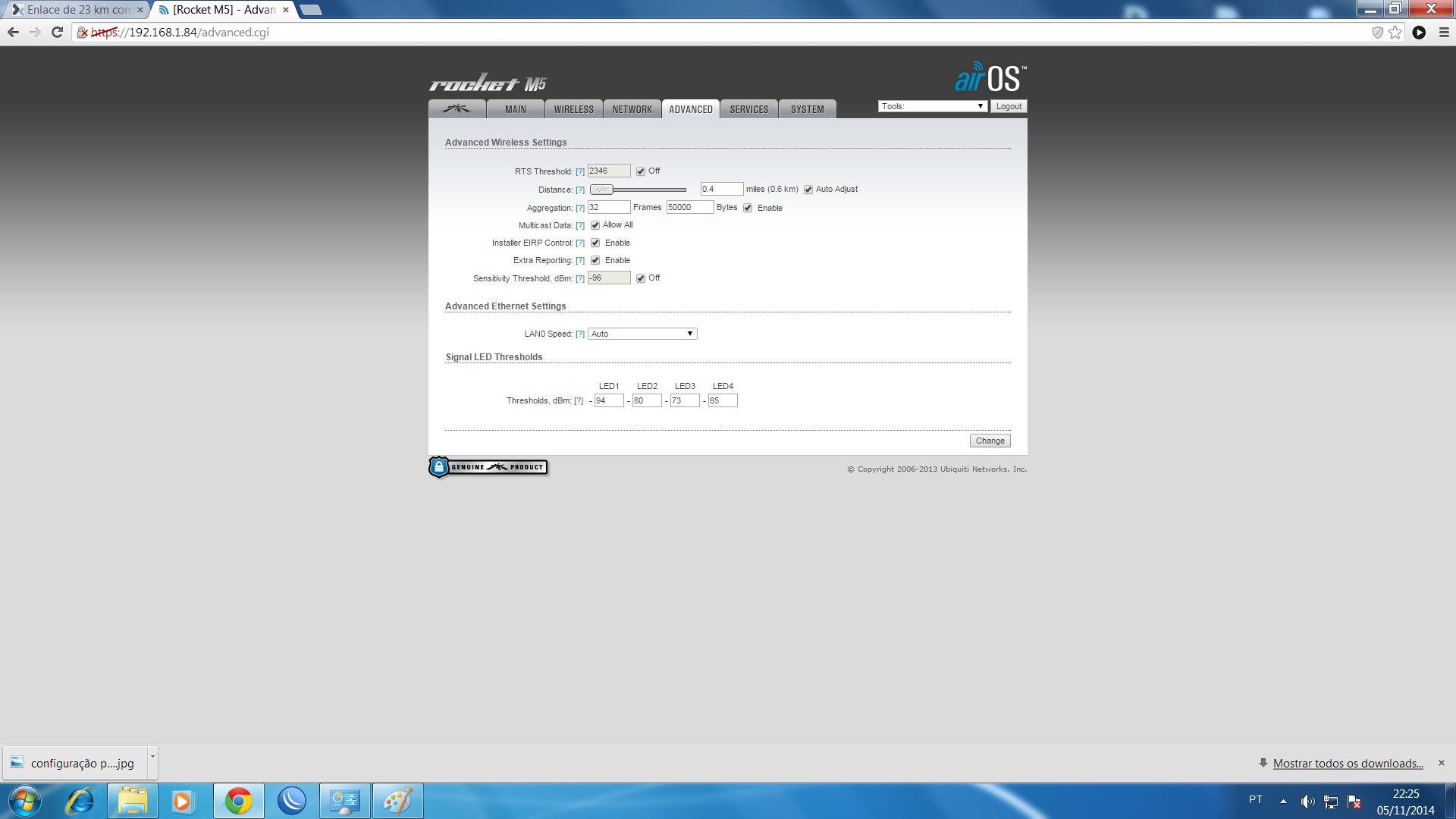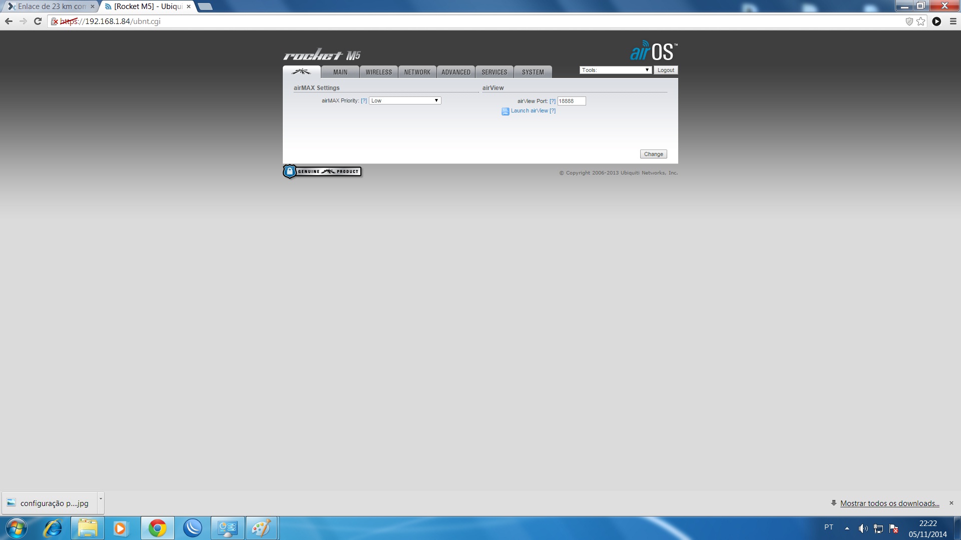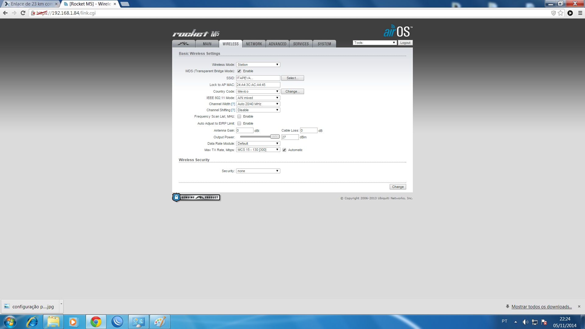 Padrão Re: Enlace de 23 km com Rocket M5 e antena de Rocket dish 30db