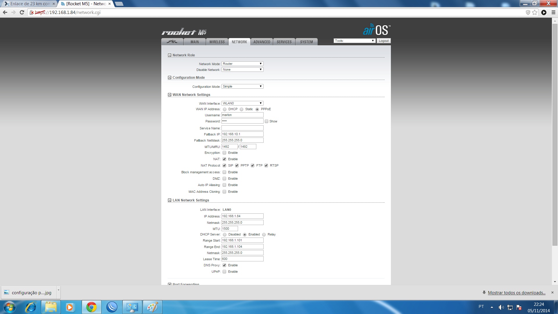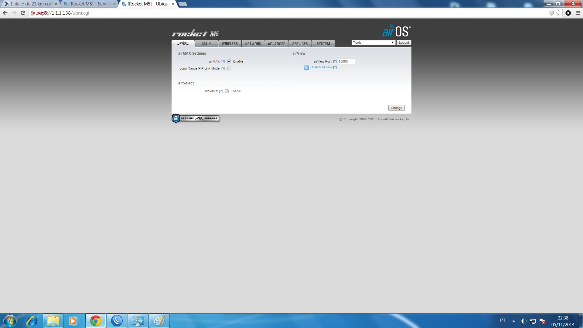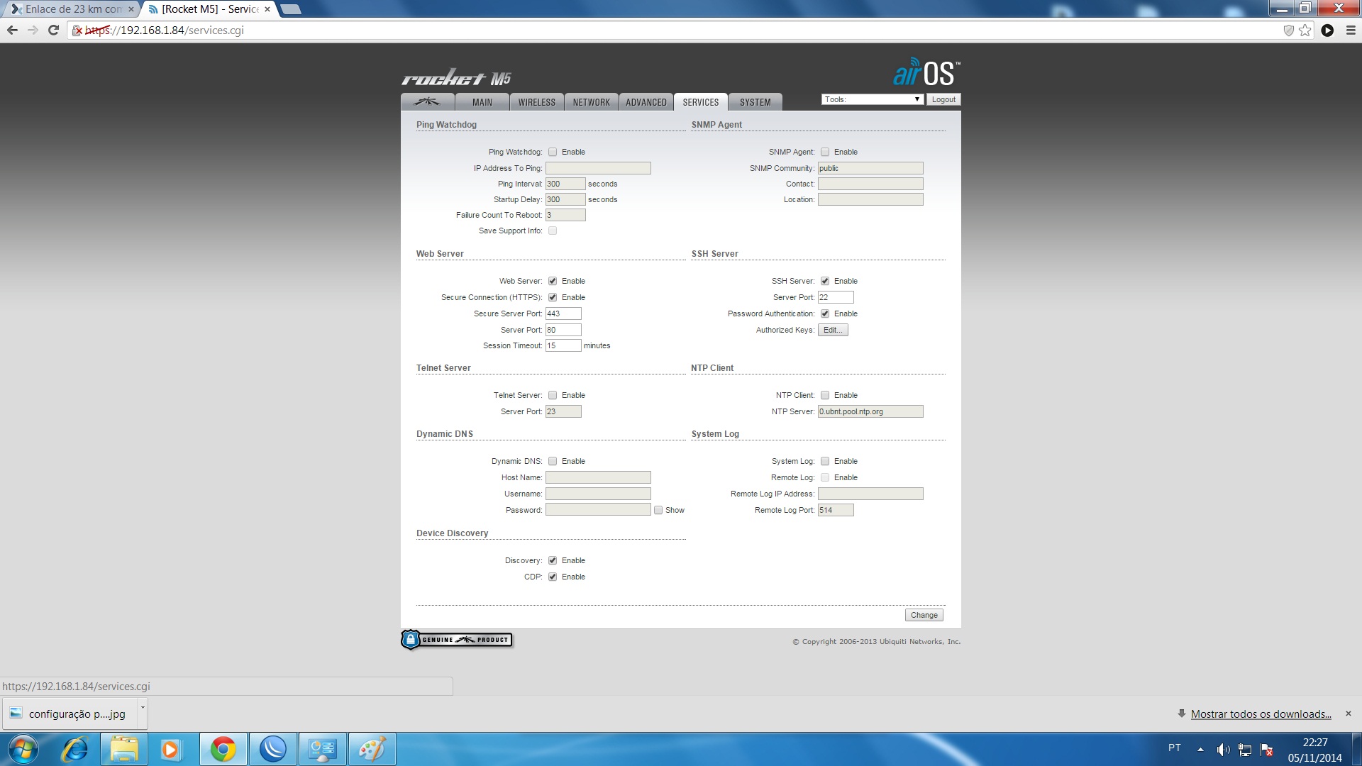 Padrão Re: Enlace de 23 km com Rocket M5 e antena de Rocket dish 30db