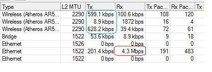Notem que no Queue não informa ele e nem na Bridge., apenas na RX da Lan, TX da WLan.
