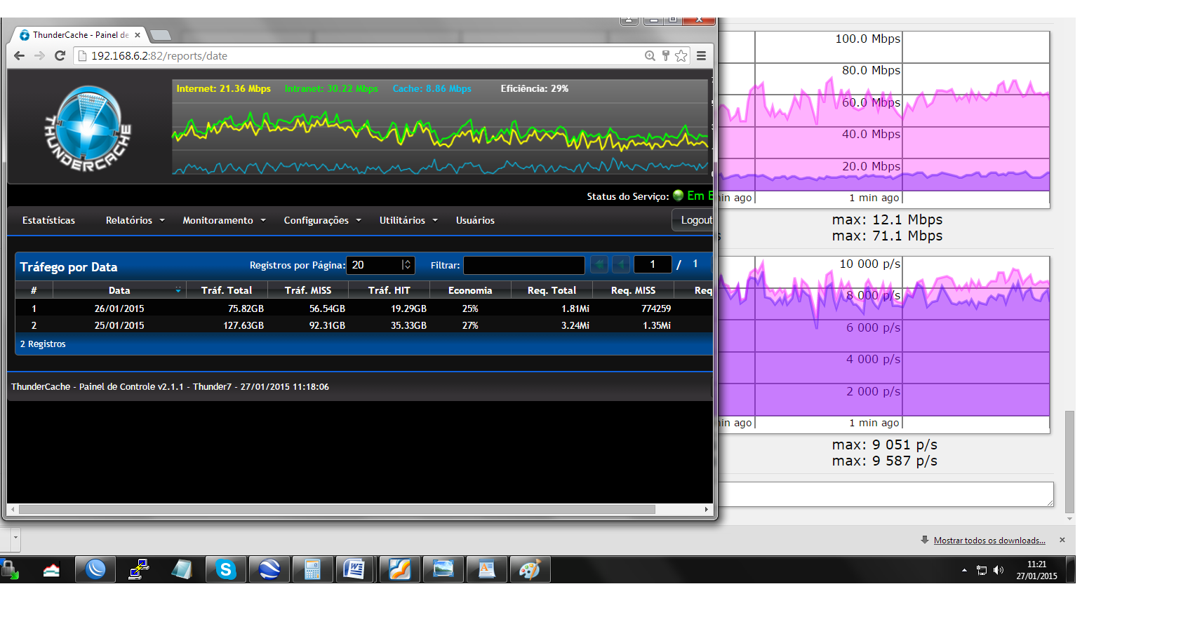 Hoje minha rede esta consumindo 110 megas dedicado. Deste todos os meus clientes passam pelo cache. Na interface do cache absorve apenas 25 megas.Destes 25 megas apenas 5 de cache, estou achando pouco.