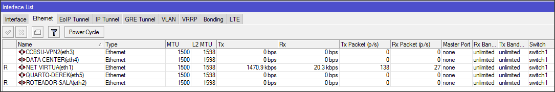 Já a Interface/Ethernet estão assim conforme a figura abaixo.