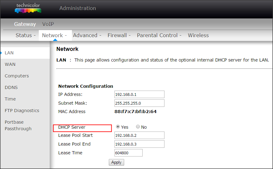 NO Modem eu tenho que desabilitar o DHCP SEVER?