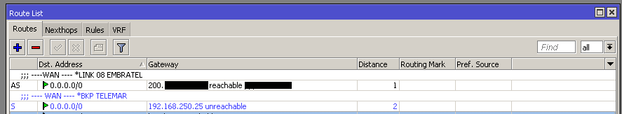 Quando o link principal cair o secundário assume, e quando o link principal voltar desativar o segundario.