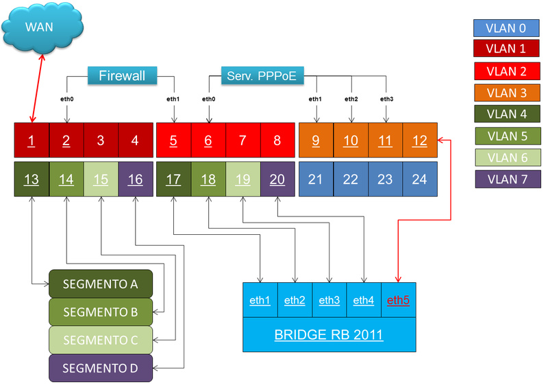 * 2 portas estão em VLAN Untagged para o quarto seguimento
