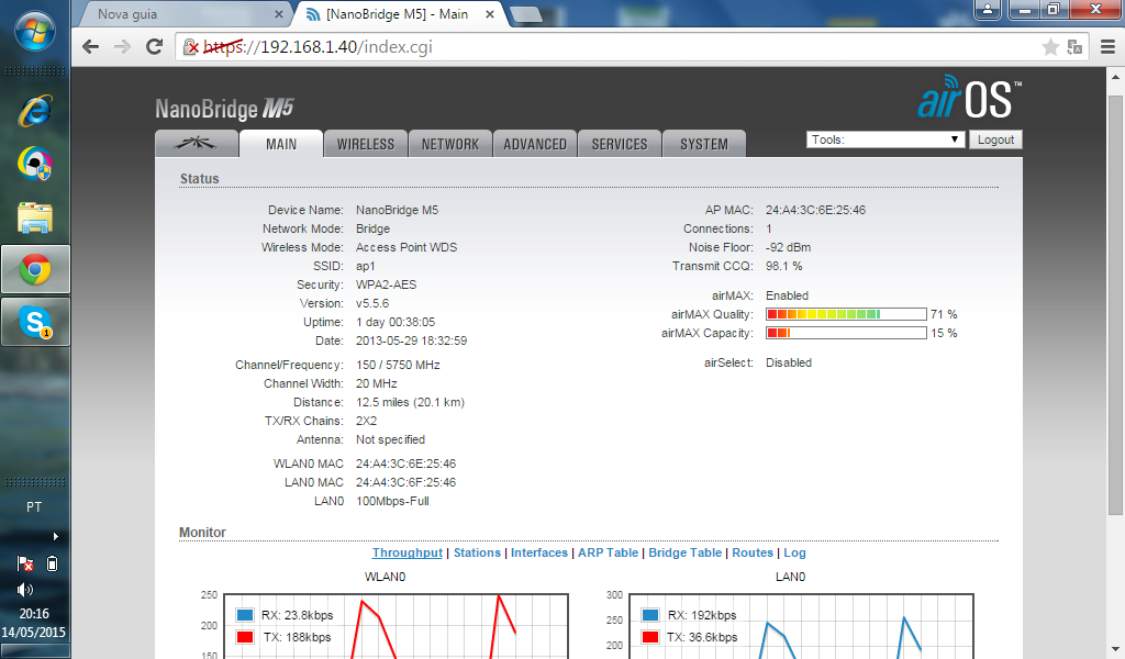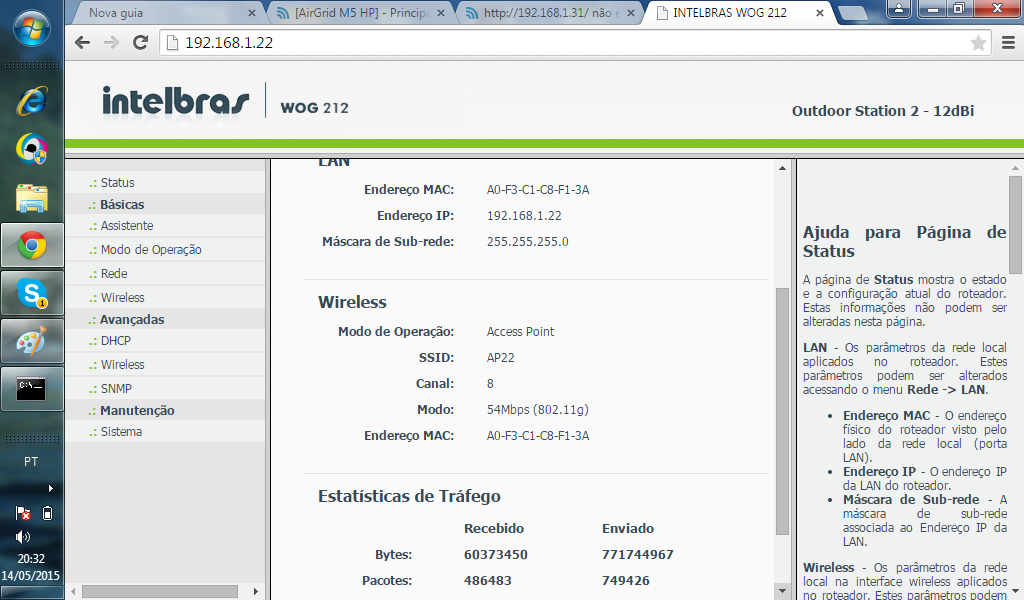 Boa tarde pessoal! Será que alguém pode me ajudar? Na realidade trabalho com manutenção em equipamentos eletrônicos e não com internet, temos uma pequena propriedade rural no interior só que o único provedor de internet da cidade só atende no máximo 8km e ficamos em linha reta a quase 30km. Montei 2 torres e arrumei mais dois pontos pelo caminho, resumindo... minha internet residencial 10mb envia através de uma nano bridge m5 á 20km que deixa um sinal para o dono da silo e envia para outro silo a 9km por um airgrid m5 que também deixa sinal e parte para o destino final a mais 8km também por airgrid m5, lá envia para o pátio e para casa por um wog212 , está funcionando simplesmente com o modem da Oi velox Technicolor td5130 e o material acima mais uns switchs, nobreak, etc. O problema é que depois de uns 40 dias funcionando normal começou a aparecer pelo menos 2 vezes por semana “Conectividade nula ou limitada” tendo que reiniciar o modem ou outro equipamento da rede para voltar, fica a dúvida será que com uma Rb resolvo ou é mais complicado?