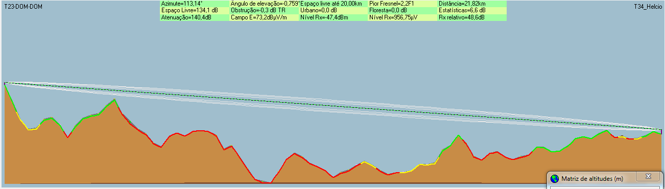 Bom dia a todos, por esses dias estava fazendo alguns estudos de viabilidade pelo radio mobile, e notei que muitos de meus estudos de enlaces que antes tinha uma boa visada estava ficando ruim, tipo se tivesse crescido uma montanha na frente, mas ai comecei a reparar no valor da altitude que esta no radio mobile, então vi que ele esta bem diferente da informação de elevação do meu GPS GARMIN ETREX, ai agora fico na duvida, em quais dos valores confiar? também fiz uma comparação com os valores de elevação do GOOGLE EARTH com o RADIO MOBILE, e também esta bem diferente, coisa de 40m a menos no RADIO MOBILE, sera que alguém já teve essa duvida? sera em qual posso confiar?