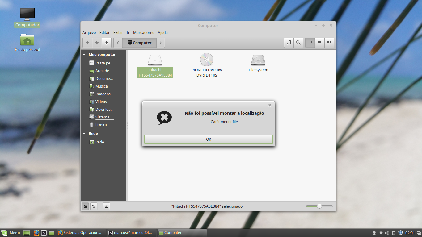 Instalei a ultima versao do Linux Mint que baixei ontem 27/04 e quando clico para acessar o conteudo do HD aparece a mensagem: