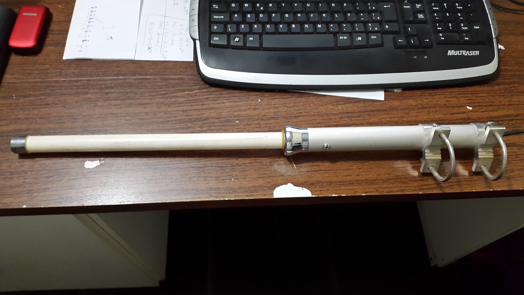 A metade de cima é uma omni 5GHz 9dBi da Airlive, foi muito importrabandeada do Paraguai a uns anos: