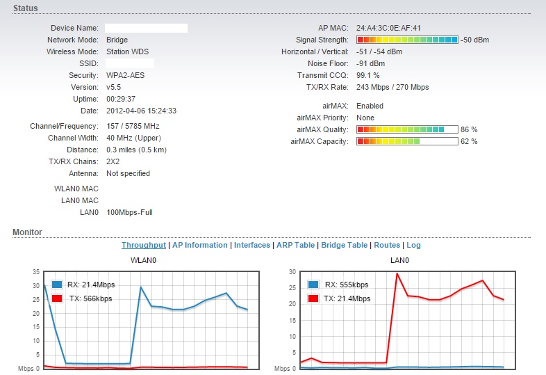 Lembrando que seu enlace wifi suporta 150 mbps mas a porta Ethernet da própria nanobridge só vai chegar a 100 mbps correto.